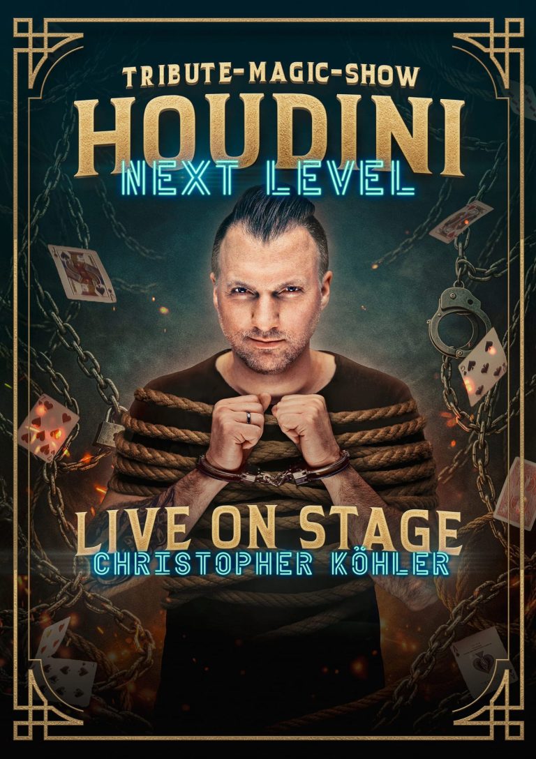 Mit „Houdini – Next Level“ feiert ein völlig neues Live-Event seine Premiere: eine Tribute Magic-Show, die nicht nur zurückblickt, sondern Houdinis Vermächtnis kompromisslos in die Gegenwart katapultiert.